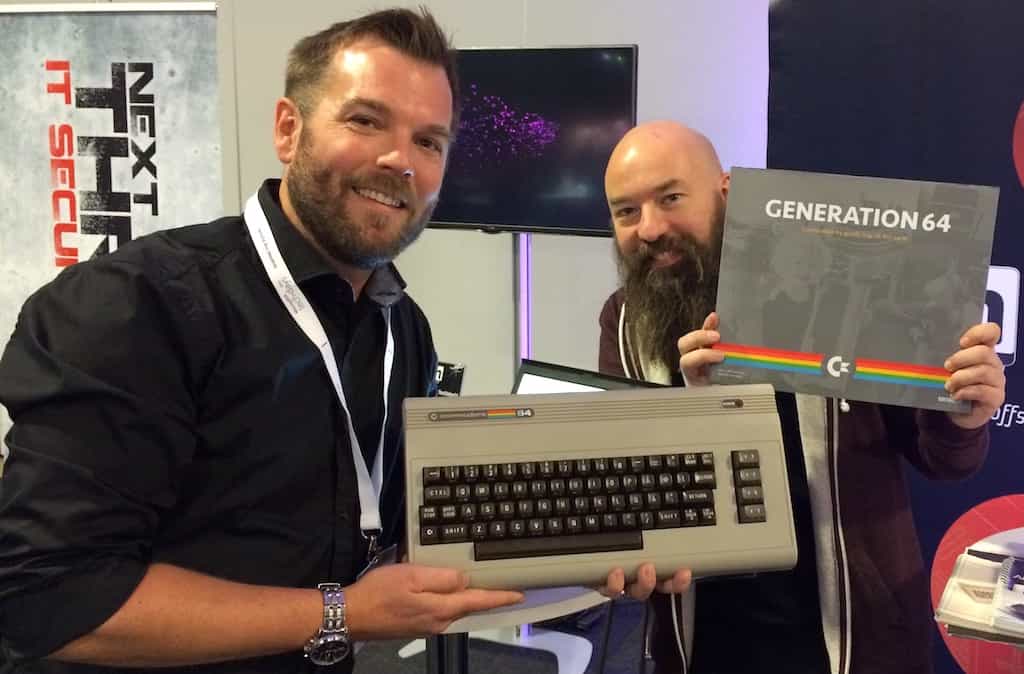 Det började med en Commodore 64. Några decennier senare är fortfarande tekniken Magnus Aschans stora passion. Här med Jimmy "Spelpappan" Wilhelmsson som skrivit boken Generation 64.
